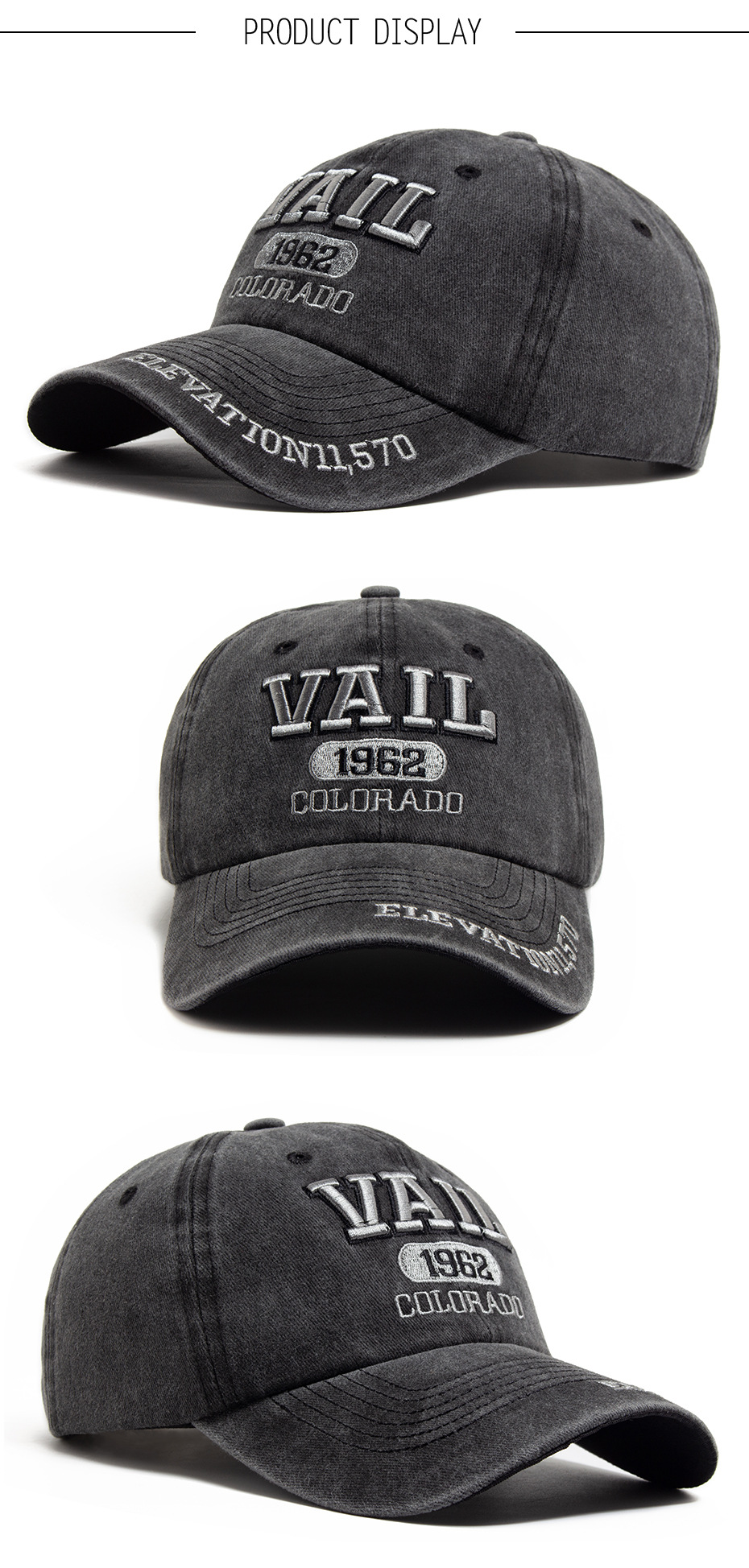 VAIL letter embroidered baseball cap
